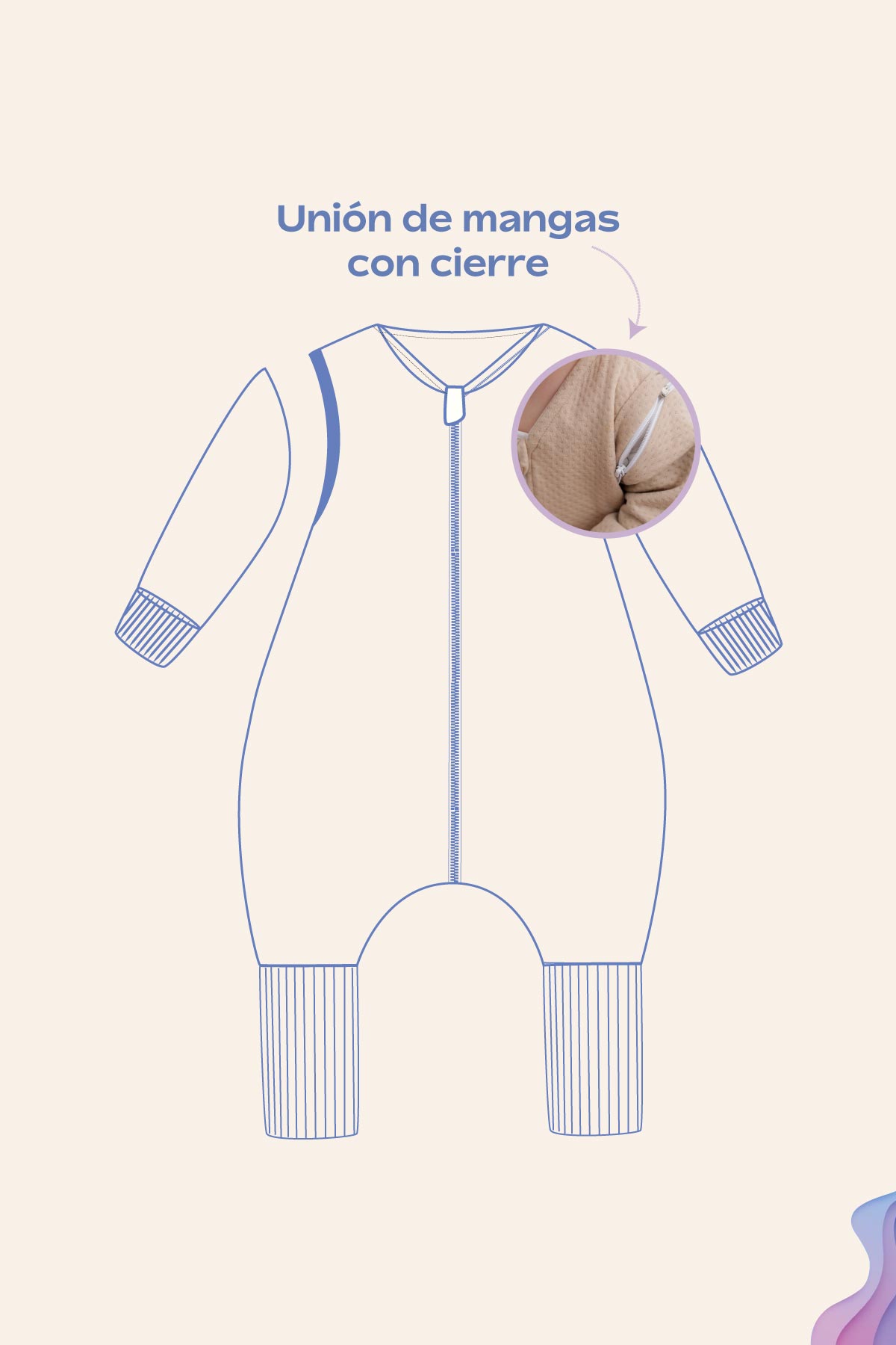 ¿Se le salen las mangas al dormir? ¡Nueva versión 13!  Con cierres en las mangas que crean un efecto de sellado en el saquito, evitando que se desabrochen y  los espacios vacíos donde se cuele el frío. Además, con tapamedias en el tobillo para taparle los pies en la noche y evitar que se le caigan las medias. No te preocupes por si se despierta y se pone a caminar con ellas, la planta del pie tiene antideslizantes que le permitirán caminar tranquilo sin riesgo de resbalarse.