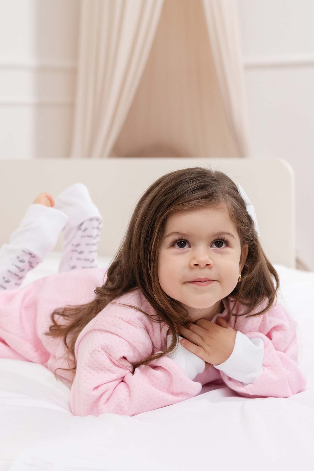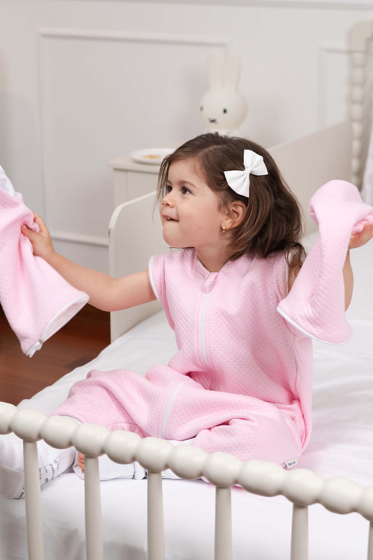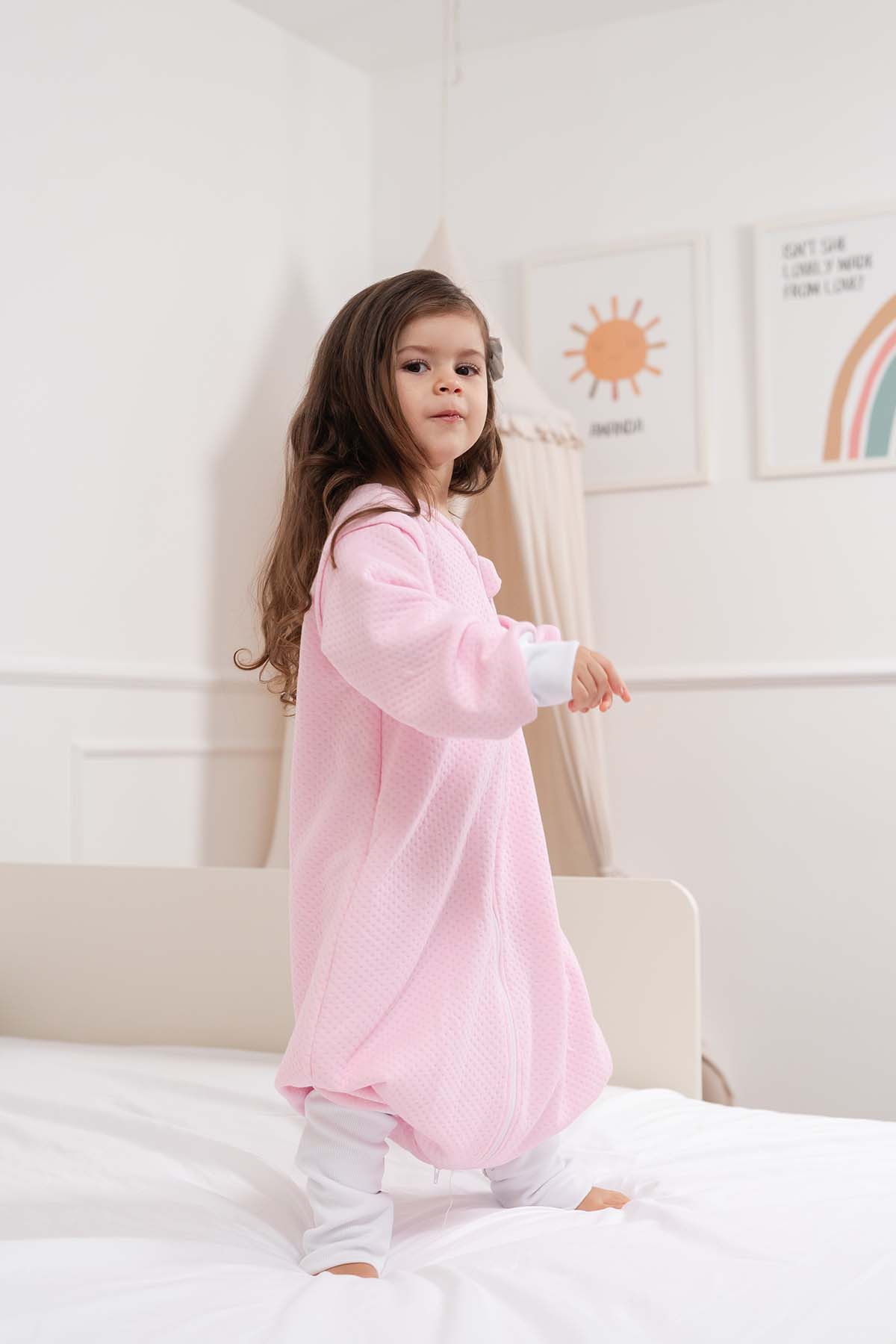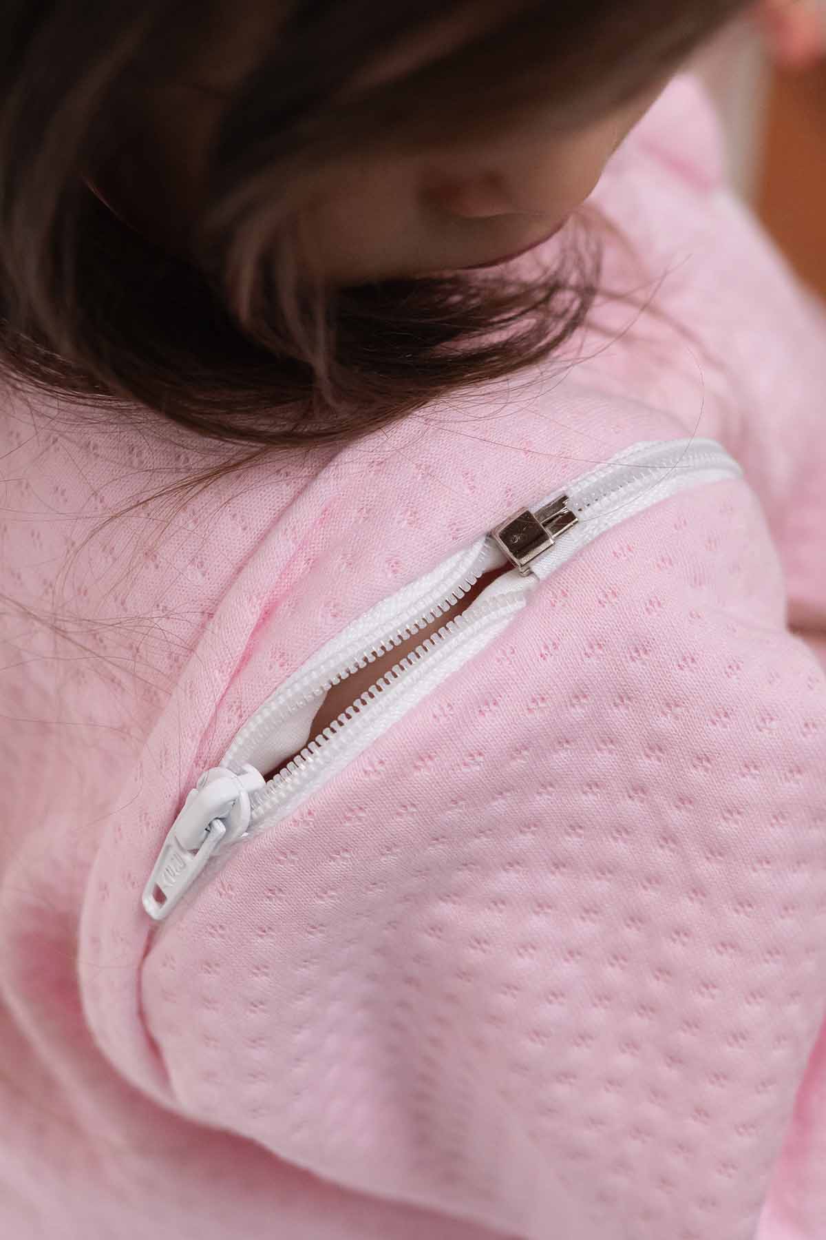 ¡Tranquila mamá tenemos la solución! ¡Nueva versión 13 de tu saquito Baby Loli Media estación! Con cierres en las mangas que crean un efecto de sellado en el saquito, evitando que se desabrochen y  los espacios vacíos donde se cuele el frío. Además, con tapamedias en el tobillo para taparle los pies en la noche y evitar que se le caigan las medias.