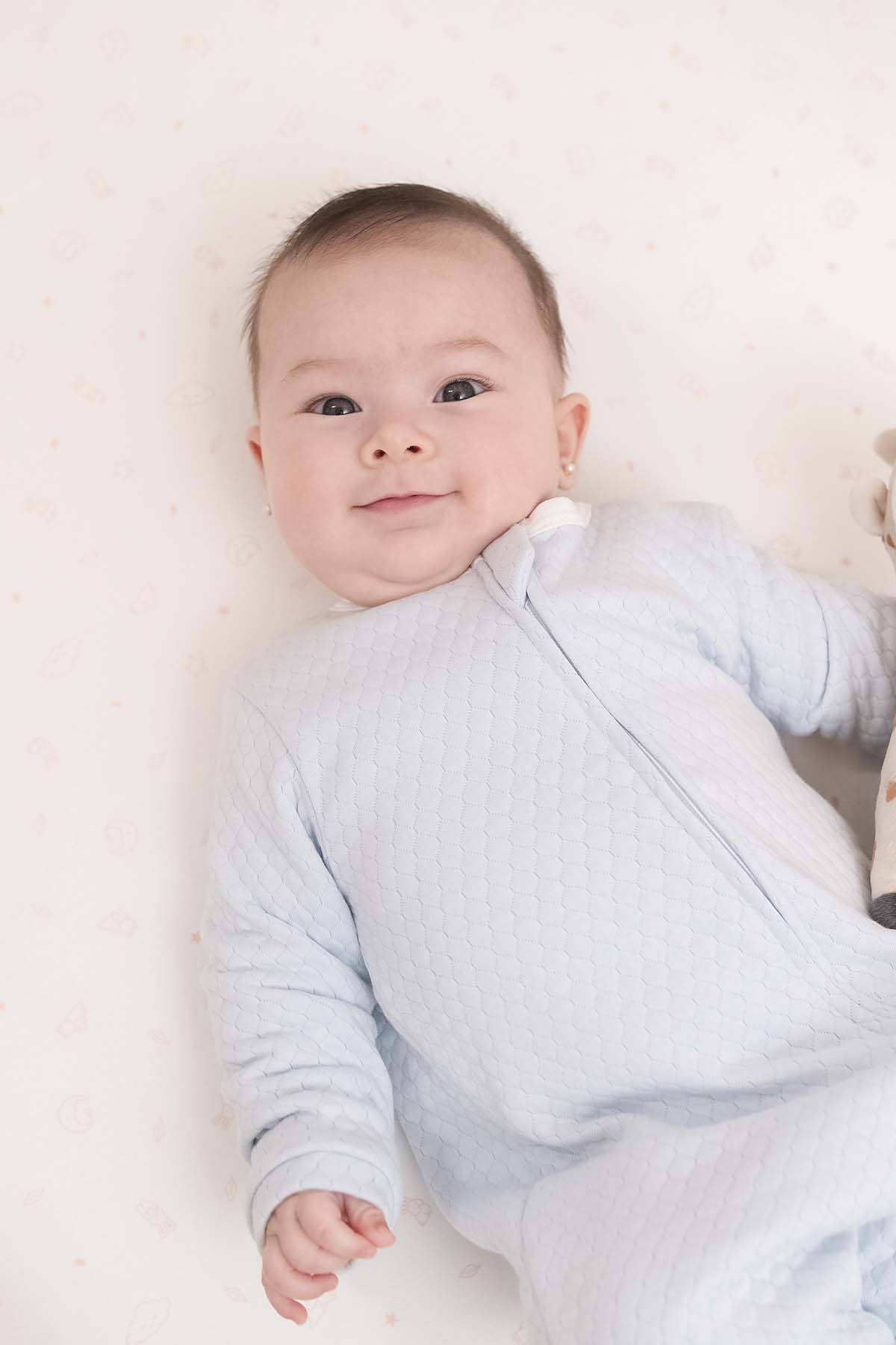 Pijama elaborada en el más delicioso algodón jacquard delgado, algodón de temperatura tibia para los climas de media estación. Cómodo enterizo para evitar barriguitas al aire. Anchitas y con los pies amplios para que ingrese el pie de tu bebé con comodidad y cierre inverso para mayor facilidad al cambiar el pañal.