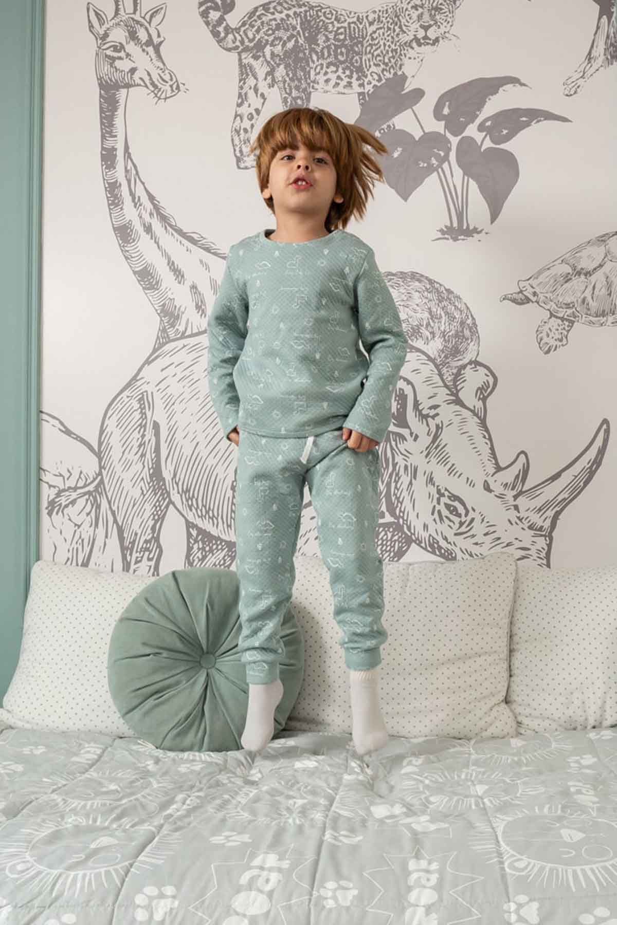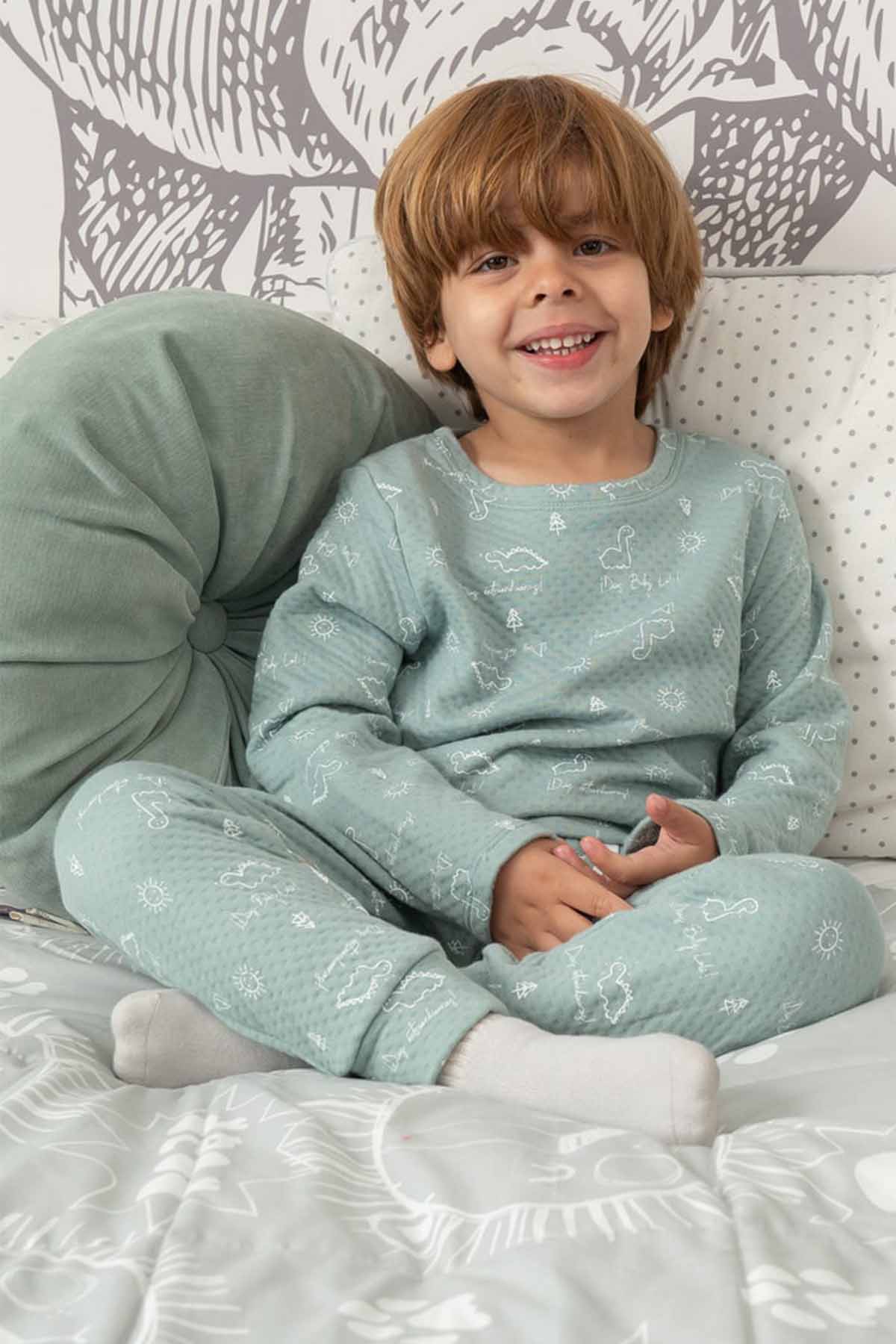 Pijama jacquard dino verde