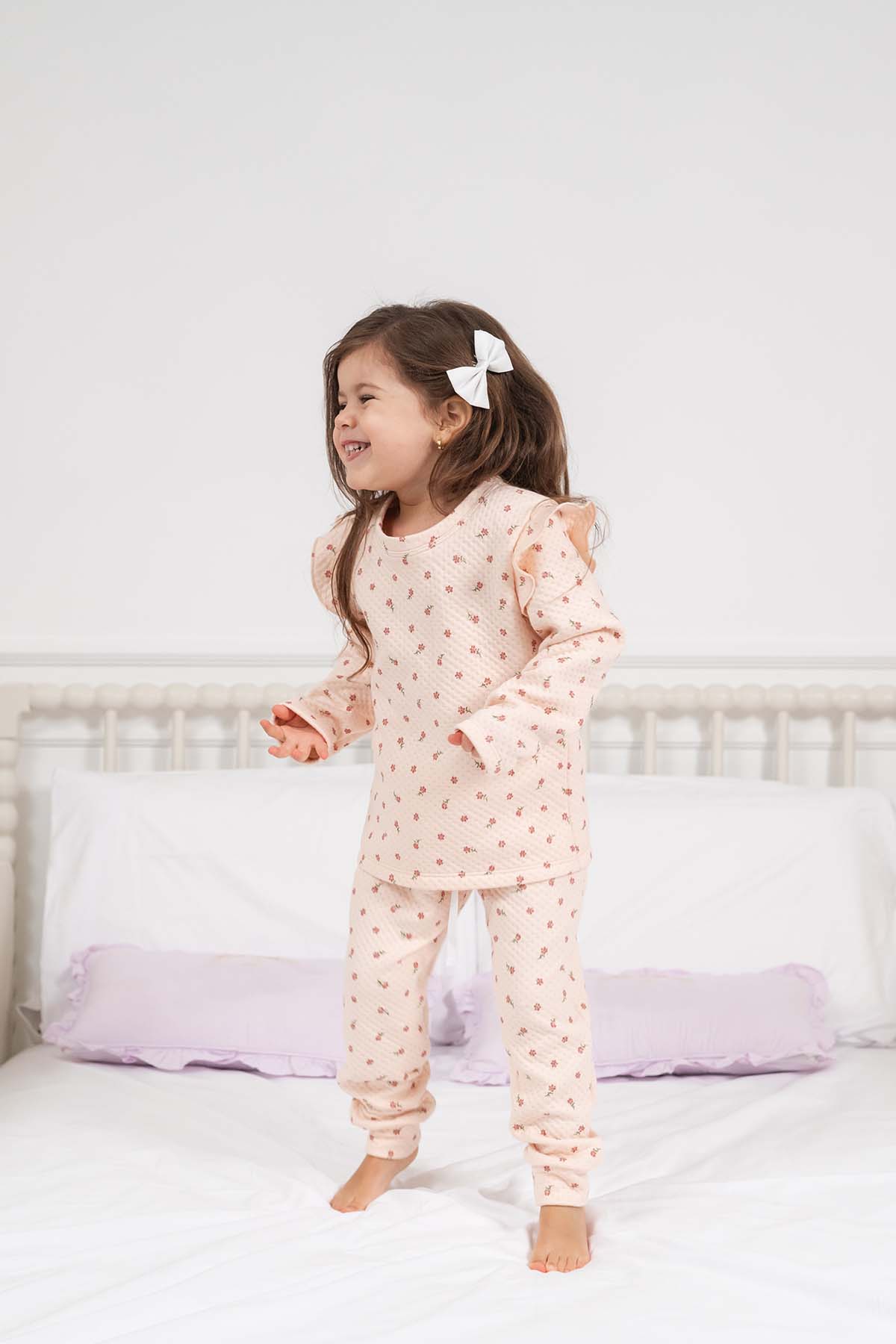 Pijama elaborada en el más delicioso algodón jacquard, algodón de temperatura caliente para los climas fríos. Compuesto por un polo manga larga con medidas testeadas para evitar que queden barriguitas al aire al levantar los brazos y pantalón con pasador ajustable en la cintura.