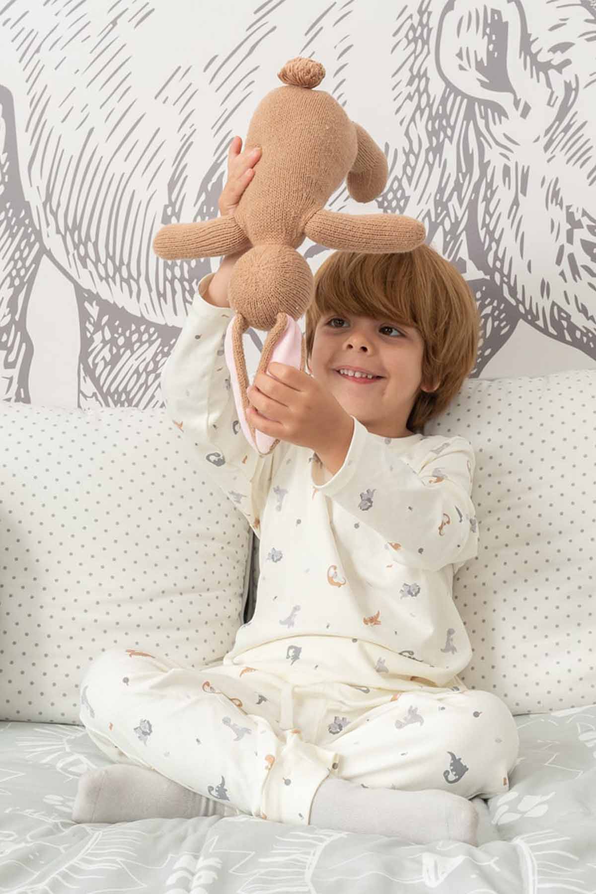 Pijama elaborada en el más delicioso algodón pima 100% premium compuesto por un polo manga larga con medidas testadas para evitar que queden barriguitas al aire al levantar los brazos y pantalón con pasador ajustable en la cintura.