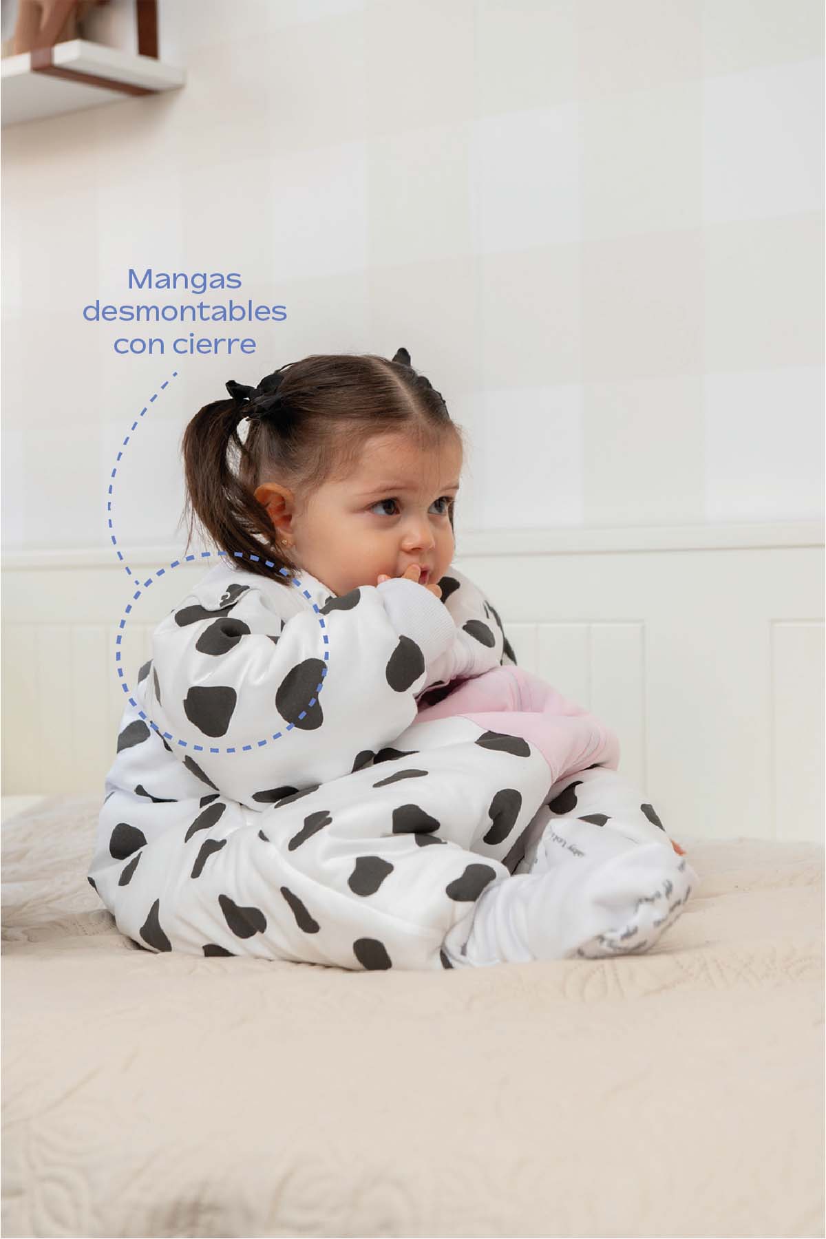 ¡Nueva versión 14! Ahora con cobertor de cierre de manga con un broche para evitar que la llave se salga y roce su carita. Esta nueva versión 14 también cuenta con contornos de manga adaptados para encajar con las mangas de tus saquitos de media estación V13 y aligerar el nivel de abrigo del saquito.