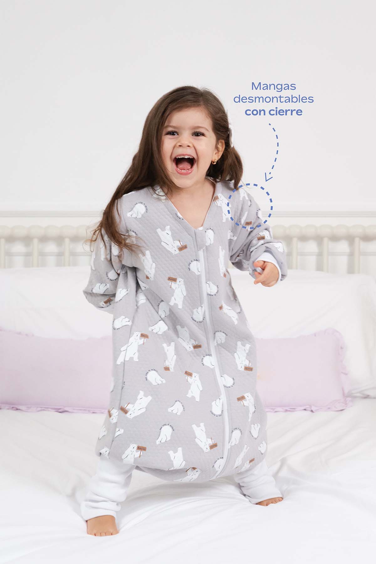 ¿Se le salen las mangas al dormir? ¡Nueva versión 13! Con cierres en las mangas que crean un efecto de sellado en el saquito, evitando que se desabrochen y los espacios vacíos donde se cuele el frío. Además, con tapamedias en el tobillo para taparle los pies en la noche y evitar que se le caigan las medias. No te preocupes por si se despierta y se pone a caminar con ellas, la planta del pie tiene antideslizantes que le permitirán caminar tranquilo sin riesgo de resbalarse.